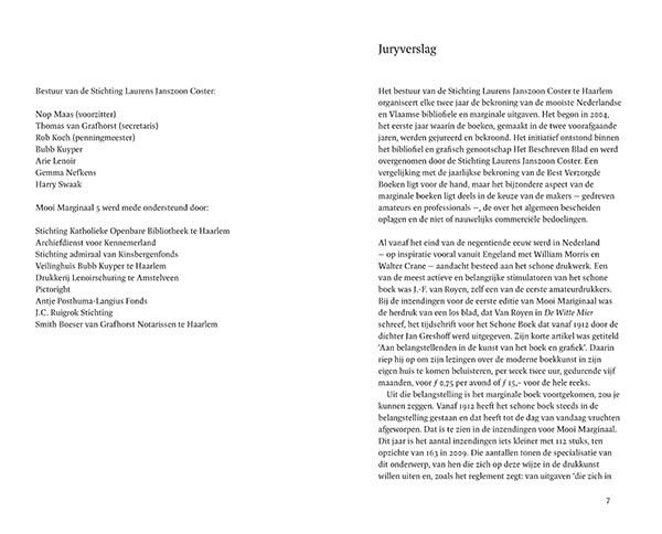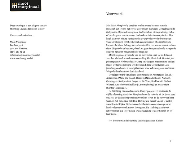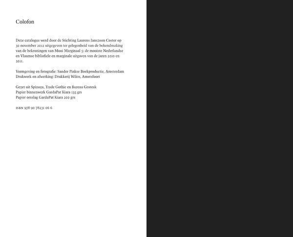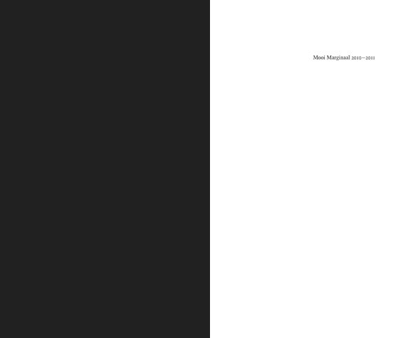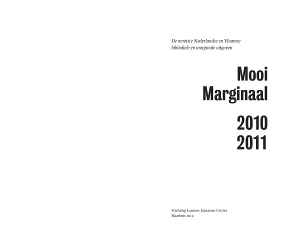 Mooi Marginaal 2010–2011 Stichting Laurens Janszoon Coster, 2012 | 140 × 226 mm, 96 pagina's omslag, binnenwerk, fotografie